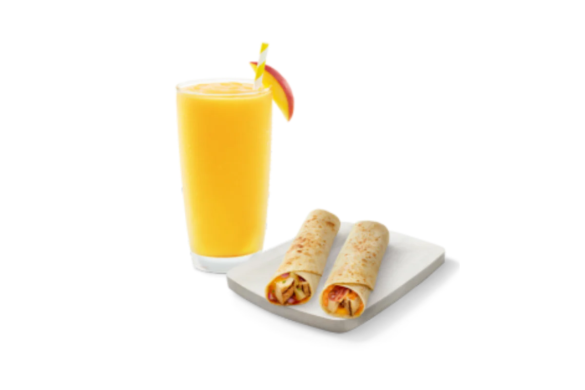 mango, pineapple, orange juice & banana $1 from each Sunshine Smoothie® purchased goes to No Kid Hungry®, 1/1 thru 12/31. Sunshine Smoothie not eligible for any offers, rewards, discounts or point redemptions. Garnish not provided with any smoothie.